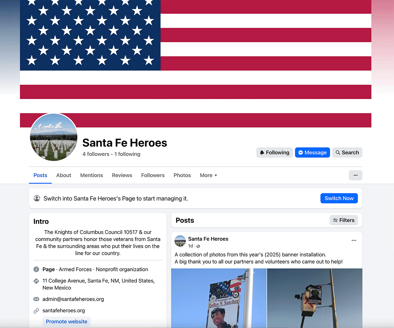 Please note, there is currently a "Santa Fe Heroes" Facebook page. We have no connection to them. Our Facebook page is named "Santa Fe Heroes Banner Project".