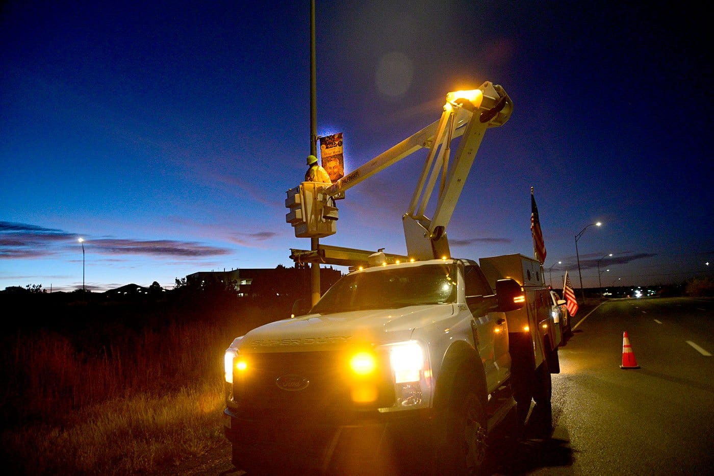 (A special shout-out to the Santa Fe Police Department for providing safetly and security to our volunteers as the banners were removed during dawn's early light!)